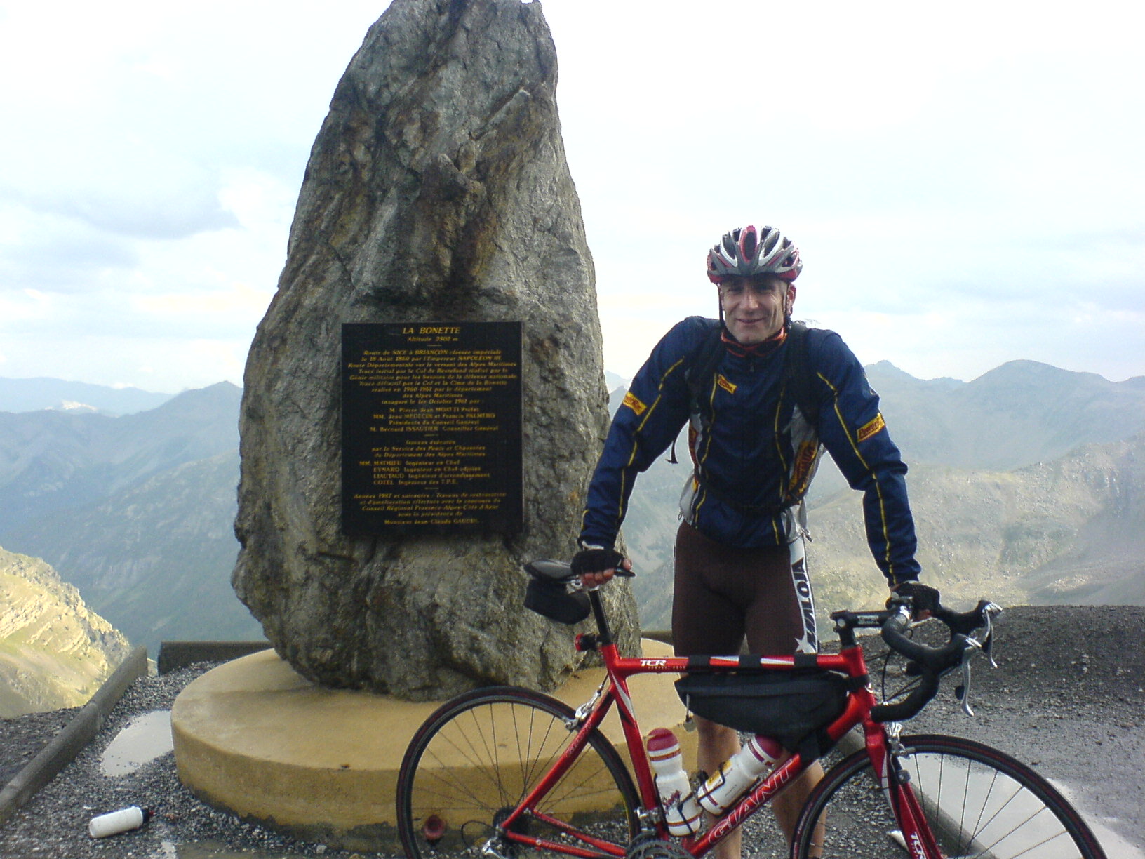 Der Pass war noch lange und wir fuhren durchnässt weiter. Leider begann es kurz vor der Passhöhe erneut zu pissen. Nun wurde es richtig kalt. Grausam kalt einfach, unsäglich. Ich mochte noch gar nicht an die kommende Abfahrt denken, brrrr! Doch was zum Teufel war denn das? Weiter vorne sah ich diese «Zusatzschlaufe», von der ich gelesen hatte. Der Col de la Bonette selber ist eigentlich gar nicht so hoch, die 2802 Meter wurden nur durch «Schummeln» mit einer zusätzlichen Schleife erreicht. Und man sah es der Strasse deutlich an, dass sie nur zum Zweck dieses Höhenrekords noch gebaut worden war. Ich traute meinen Augen kaum, aber da wollten wir noch hochfahren. Wellig wie ein alter Teppich und mit mörderisch steilen Abschnitten, das Ding... ein Foto machte ich leider nicht davon, denn dafür war mir das Handy zu schade: es regnete in Strömen. Und es ist sehr unangenehm, in völlig durchnässter Kleidung bei der Kälte noch unnötige zusätzliche Bewegungen zu machen. Aber schon hier dachte ich, nur rauf und dann nichts wie weg von hier. Deshalb liess ich Marc asozial stehen und gab auf den letzten Metern Gas!